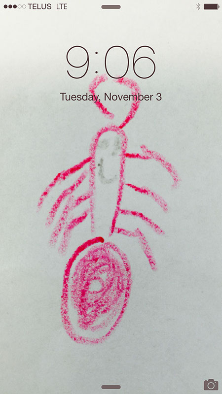 A bug type of thing that my son drew. I like the simplicity (which is important for mobile device backgrounds).
