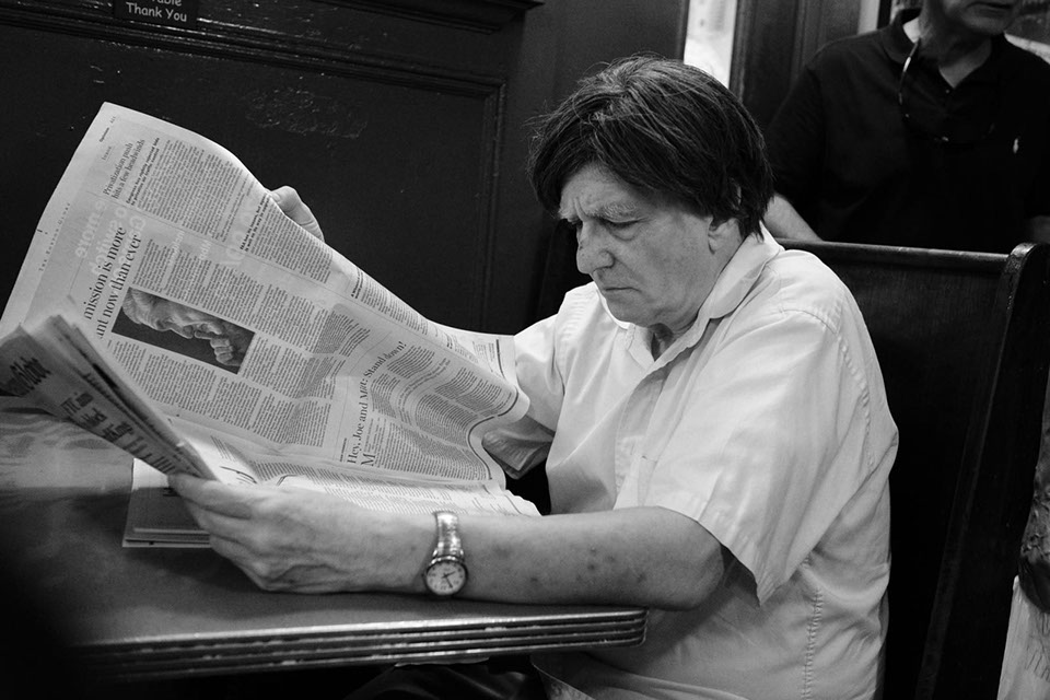 A man enjoys (well, I don't know, maybe) some wind with his lunch.