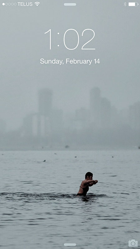 She’s from Russia and she swims in February. Downtown Vancouver in the background.