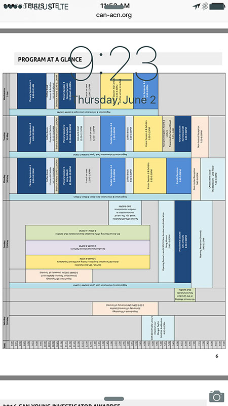 Purely practical: the schedule for the 2016 Canadian Neuroscience Meeting for easy access.