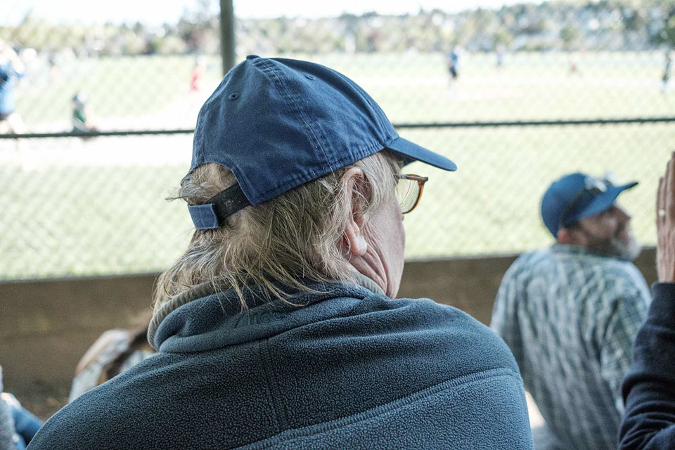 At the little league game, grew his hair out a bit